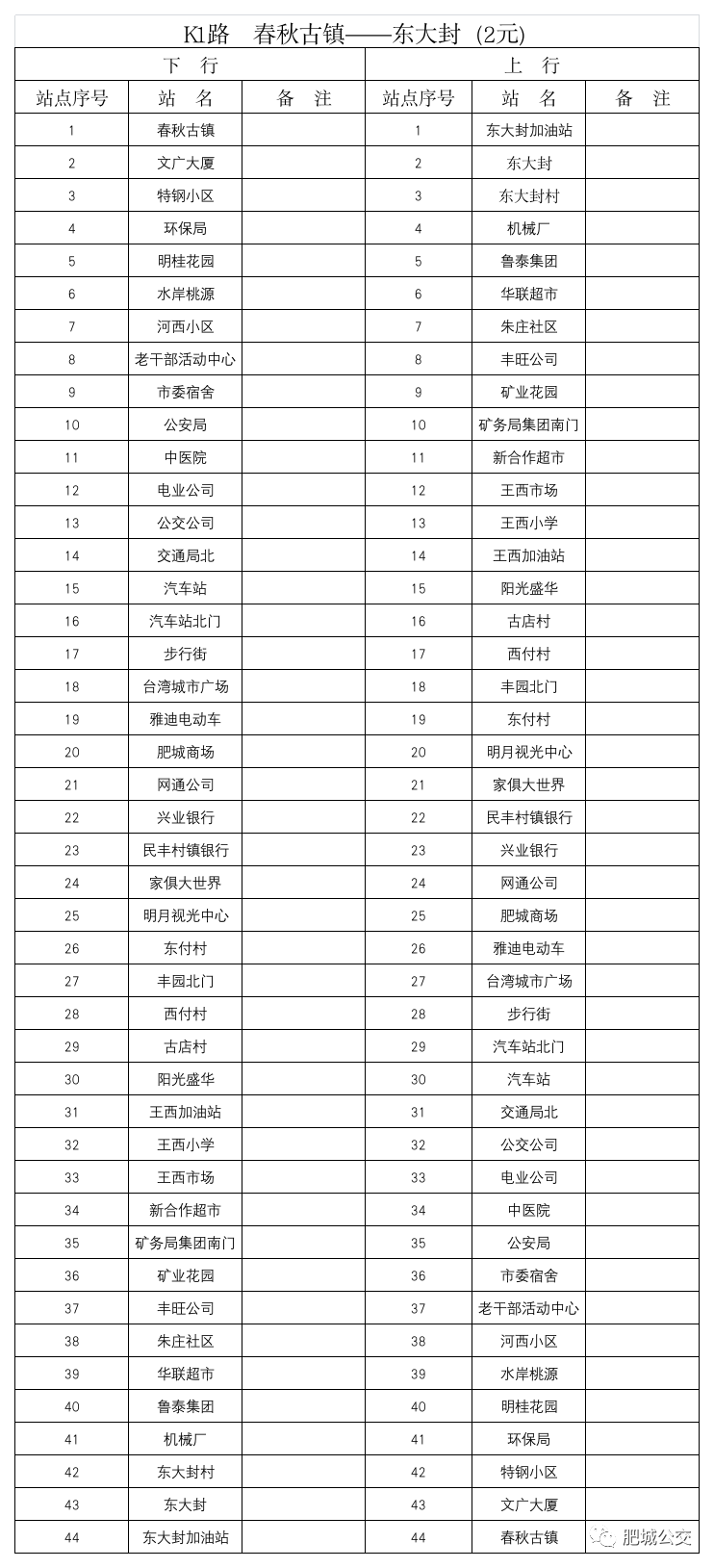 肥城1路/k1路公交线路(2023年最新公交线路)